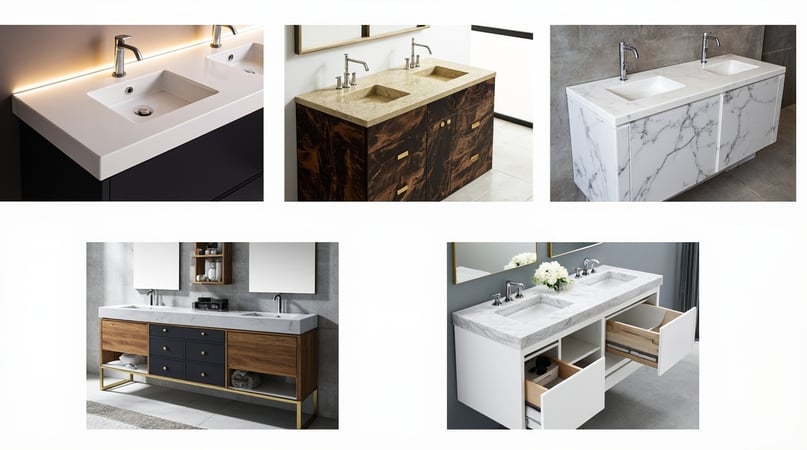 Colorful Natural Stones,Floating Vanities,Natural Timber Vanities,Double-Sink Vanities,